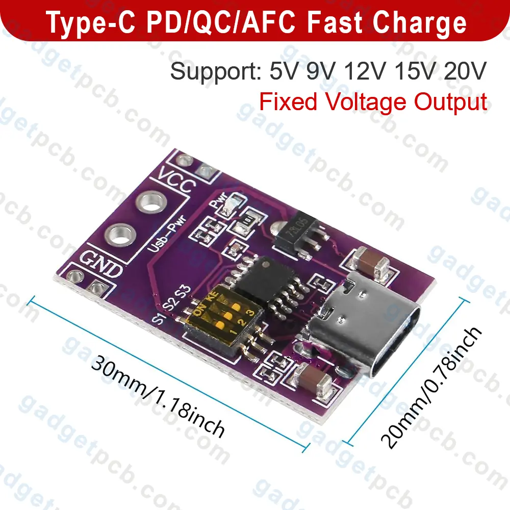Buy Type-C PD/QC/AFC Fast Charge Decoy Trigger Module Support 5V 9V 12V 15V 20V Fixed Voltage Output in Bangladesh from online at Gadgetpcb.com