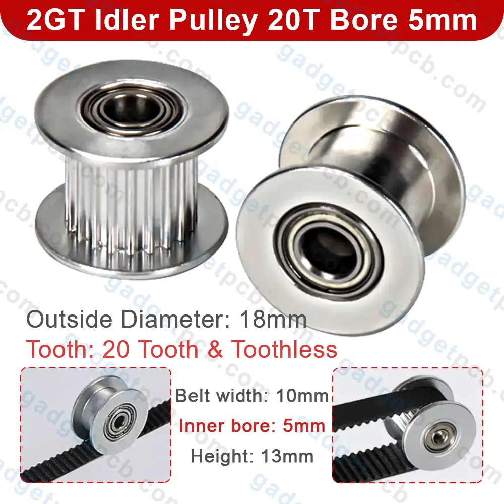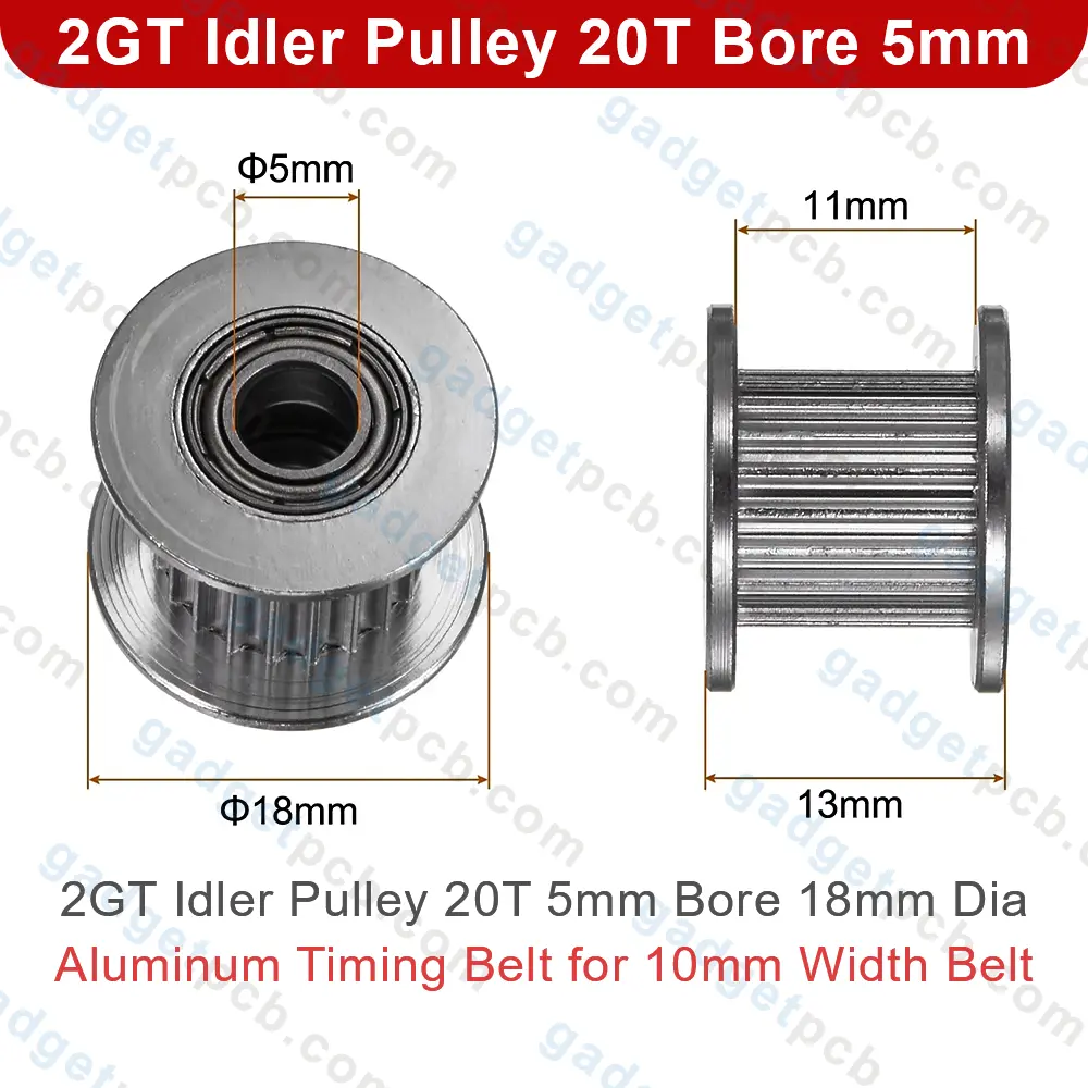 The GT2 Idler Pulley 20 Teeth 5mm Bore Aluminum Timing Belt Wheel for 10mm Belt 3D Printer high-precision motion for CNC and 3D printing projects. GT2 Idler Pulley 20 Teeth 5mm Bore Aluminum Timing Belt Wheel for 10mm belts. Designed for accurate transmission, this pulley ensures zero slip and constant rotation speed.