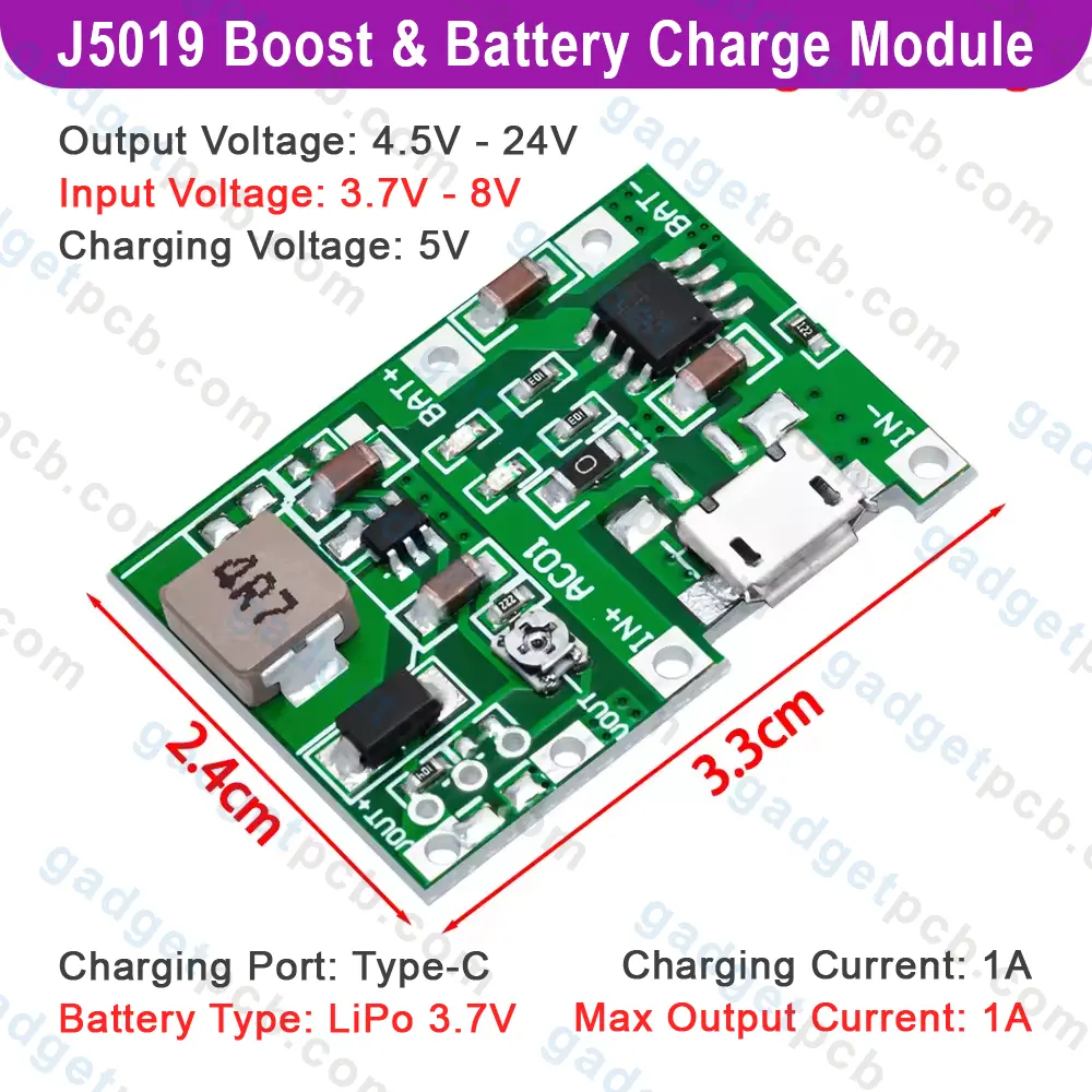 Buy J5019 Boost Module Type-B DC-DC Step Up and Down 4.2V-24V Boost Module 3.7V/4.2V Battery Charging Board in Bangladesh from online at Gadgetpcb.com