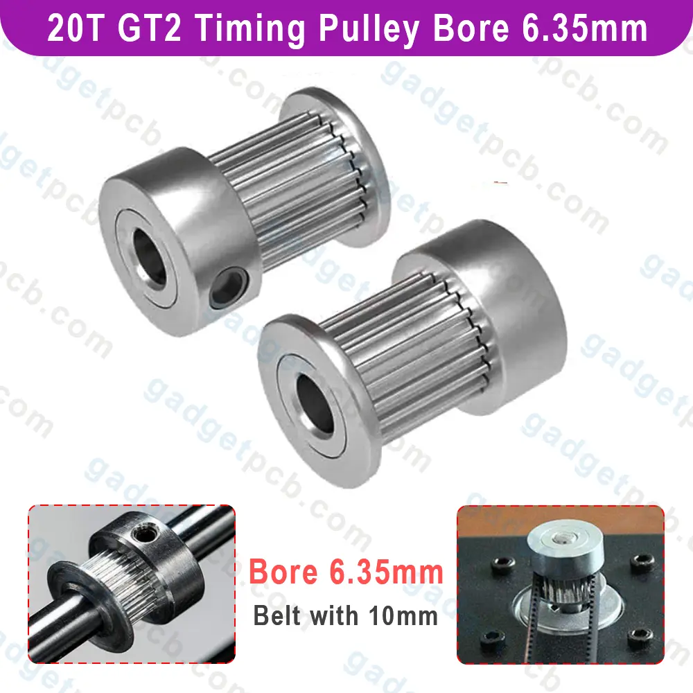 Buy 20 Teeth GT2 Timing Pulley Bore 6.35mm Belt with 10mm Aluminum Synchronous Wheel 20T GT2 Timing Pulley Hole 6.35mm in Bangladesh from online at Gadgetpcb.com