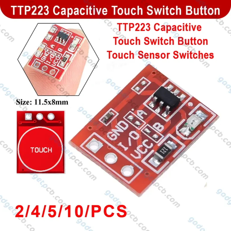 The TTP223 Touch Key Module is based on a touch-sensing IC (TTP223) capacitive touch switch module. A capacitive touch sensor module based on the dedicated TTP223 touch sensor IC. The module provides a single integrated touch sensing area of 11 x 10.5mm with a sensor range of ~5mm.