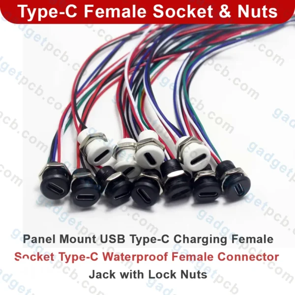 Buy Type-C Female Socket Connector for Panel Mount 3A 2-Wire Female 24AWG Wire for Nuts USB-C Charging Socket in Bangladesh from online at Gadgetpcb.com