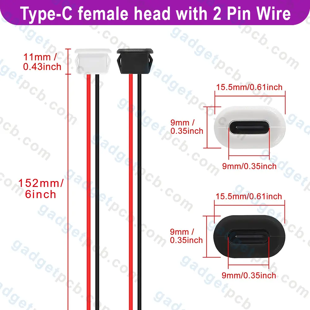 - This Type-C pigtail bare wire is Type-C female head, and one end is 2-pin 2-wire bare wire, providing a safe and simple DIY solution for type-C connector with cable.