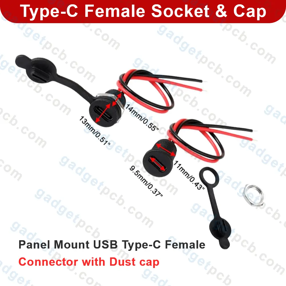 Buy USB Type-C Female Socket Connector for Panel Mount 3A 2-Wire Female 24AWG Wire for Dust Covers and Nuts in Bangladesh from online at Gadgetpcb.com